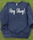 Represent your Southern pride with the Navy and White Hey Shug! (R) Sweatshirt. Made for both men and women, this crew neck sweatshirt showcases your charm and attitude. Perfect for showing off your Southern style and heritage.